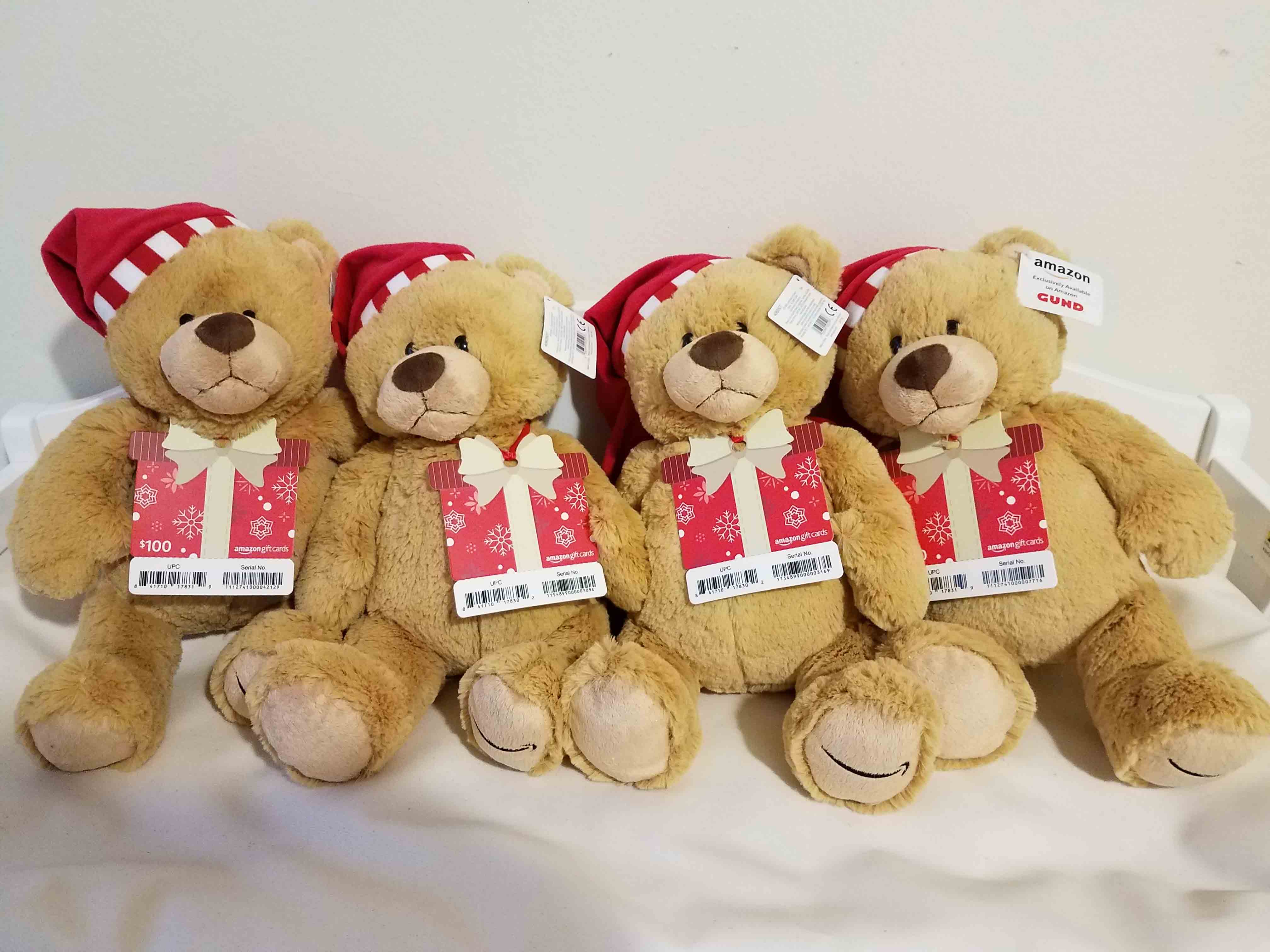 任意超过 $100 的 GC 都会送一只小熊,所以如果买好几个 $100,可以获取多只(好像今年一人一只了?)- 只有购买上述链接中的实体礼品卡才能获取小熊,小熊和礼品卡一起寄过来