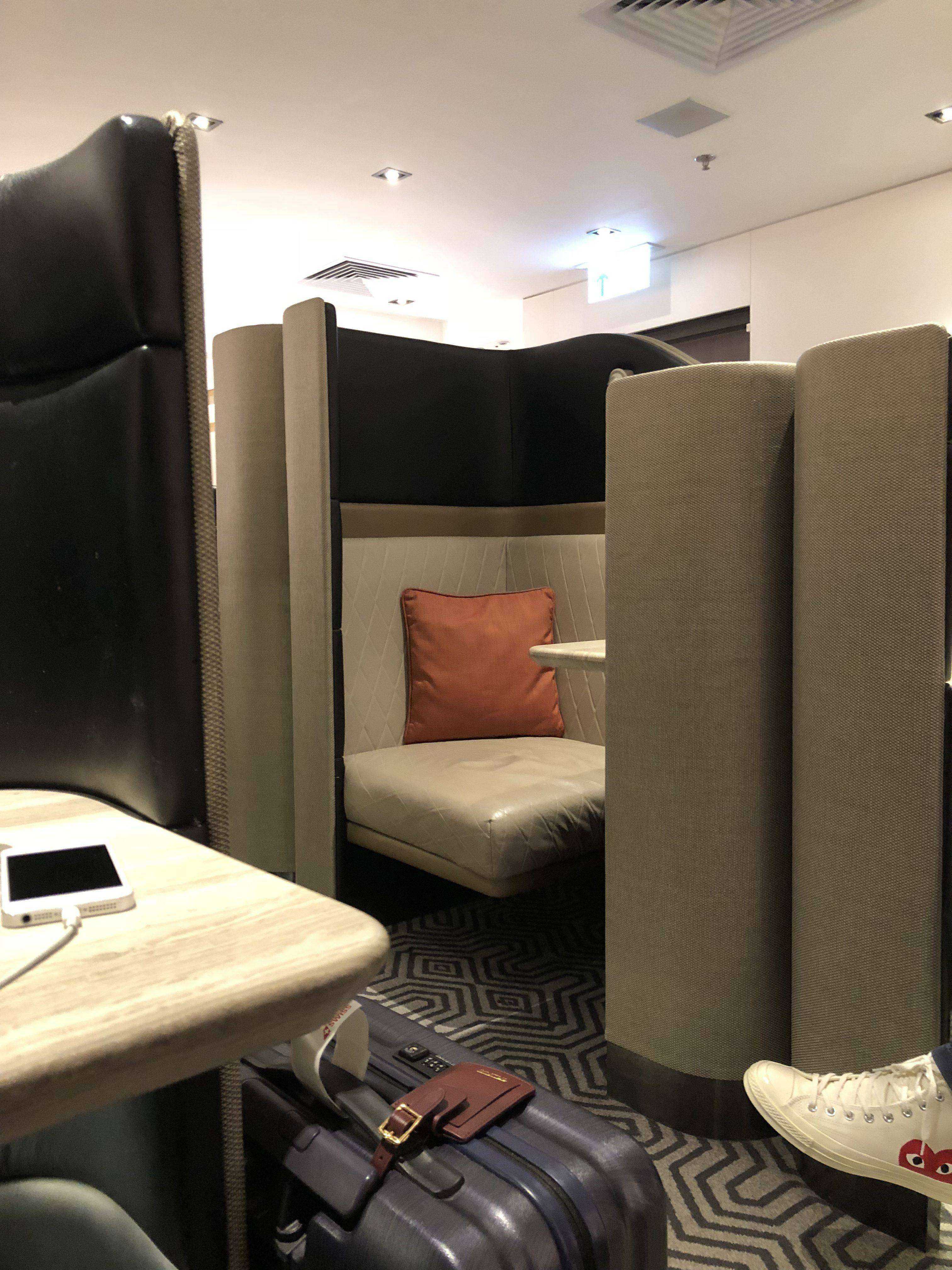 进去以后,给前台看下机票,就让进去了。进去了才发现,人真的多。整个休息室都满了,本来还想去洗个澡,问了下前面还有 5 个人在排队,放弃。在里面站着等了 10 分钟左右,终于等到一队人马离开,抢到了半封闭的沙发,还是比较幸运的。