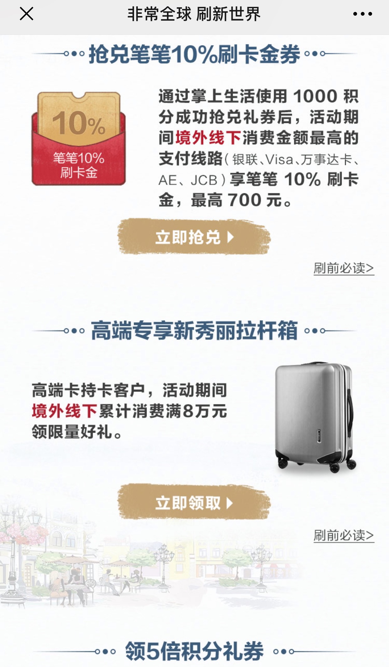 大陆银行实在太多了,数量庞大的地方银行还有外资银行,读者如果手上有卡,可以在官网或者官微查看是否有境外返现或积分活动,有发现好活动欢迎留言告知我们;