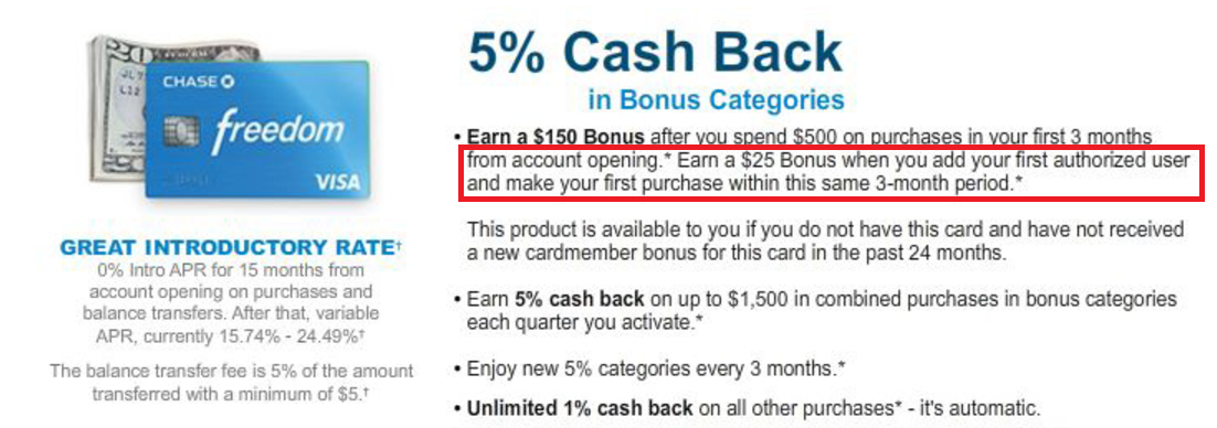 - Chase Freedom:加副卡送 2500Ultimate Rewards