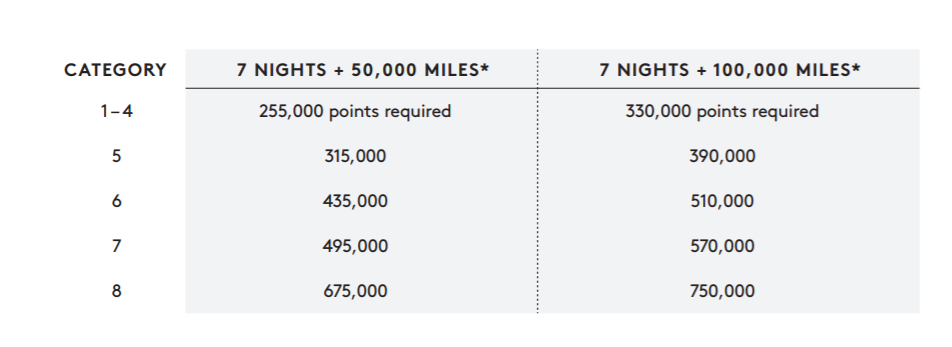 - 大礼包的需要点数=7 晚对应等级的酒店点数+得到的航空点数