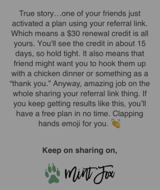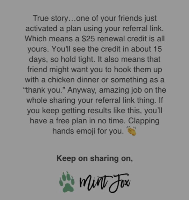 【2022.8 更新】Mint 更改了 referral 项目。现在一年只能邀请 4 次。根据被邀请人开通的 plan,你可以获得不同的邀请奖励,最低一档是 45 刀话费,最高是 90 刀。也就是一年最多获得 180-360 刀话费。总体奖励比以前削弱了。但是,更容易拿到 180 刀话费奖励了,非常适合每年能 PUA 少数朋友加入的人。