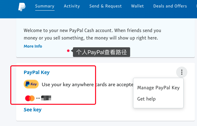 - 如果你消费的时候,用 PayPal 支付,PayPal Key 相当于绑定在里面的一张卡,可以随时选择用 PayPal Key 来支付。