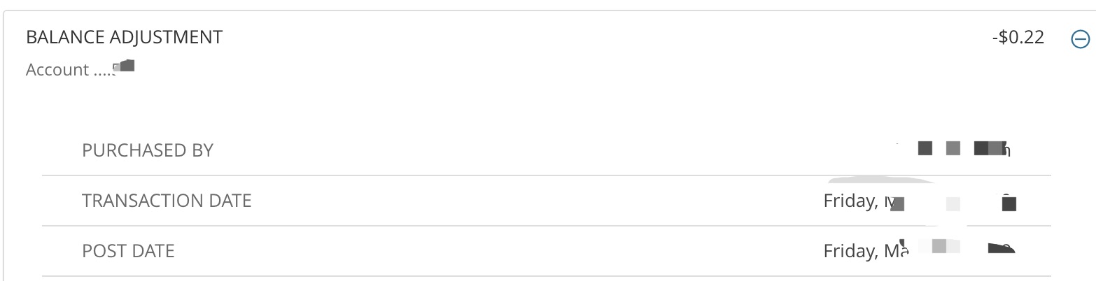 - Apple Card,小于等于 $1.0,账单显示 Balance Adjustment