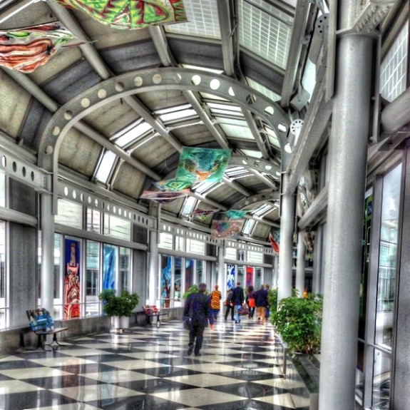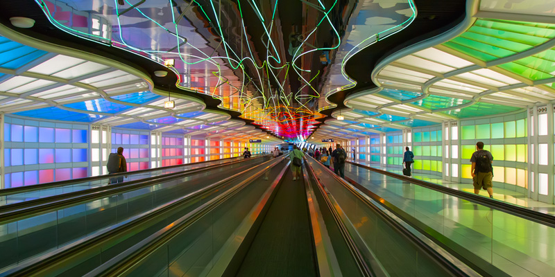 由于是美国国内转这段航班,就直接从国内的登机口一路走到了国际的登机口(中间也可乘坐公交车,不过还是走路比较方便)。中途还感受了下芝加哥独有的文化和艺术气息~