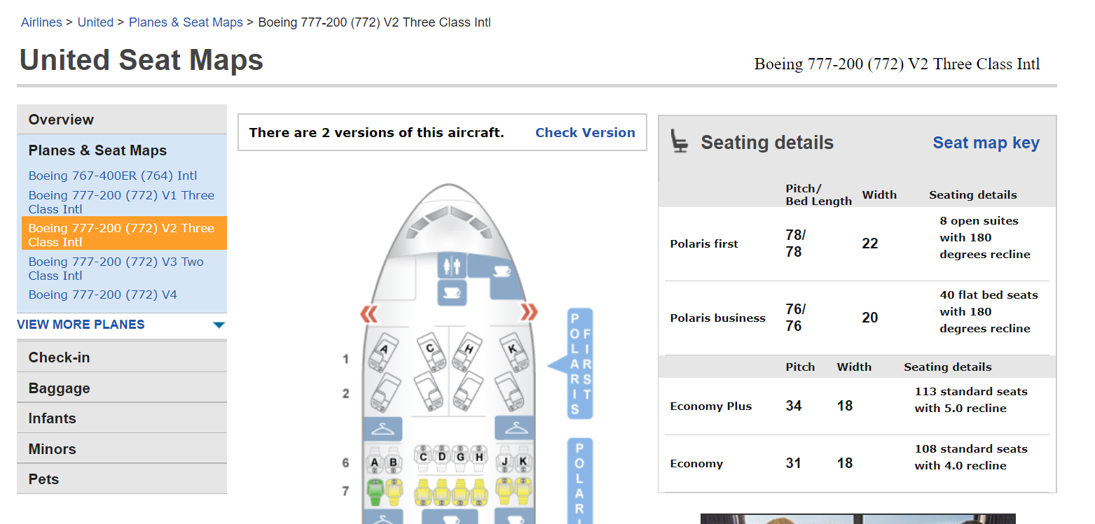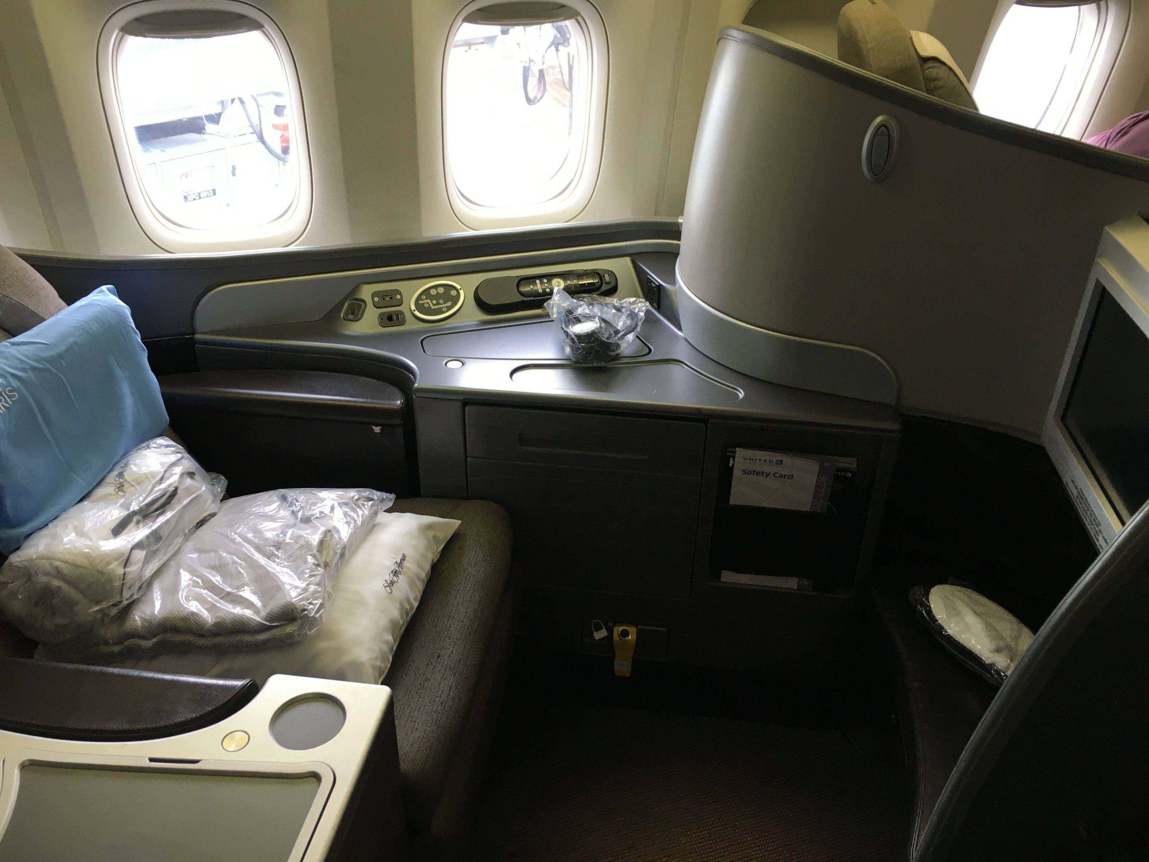 此次航班的头等舱总共有八个座位,我们占了 1C 和 1H。本来从 seatguru 的座位图和当时 UA 选坐的图来看,1C 和 1H 中间还隔着一些距离。后来询问过乘坐过此类航班的岳掌门后,确定了中间其实是连着的。